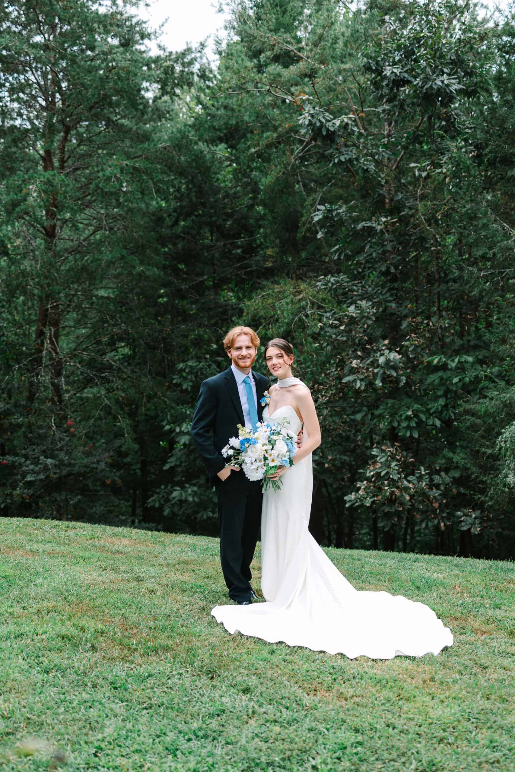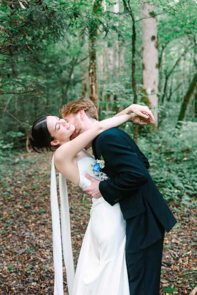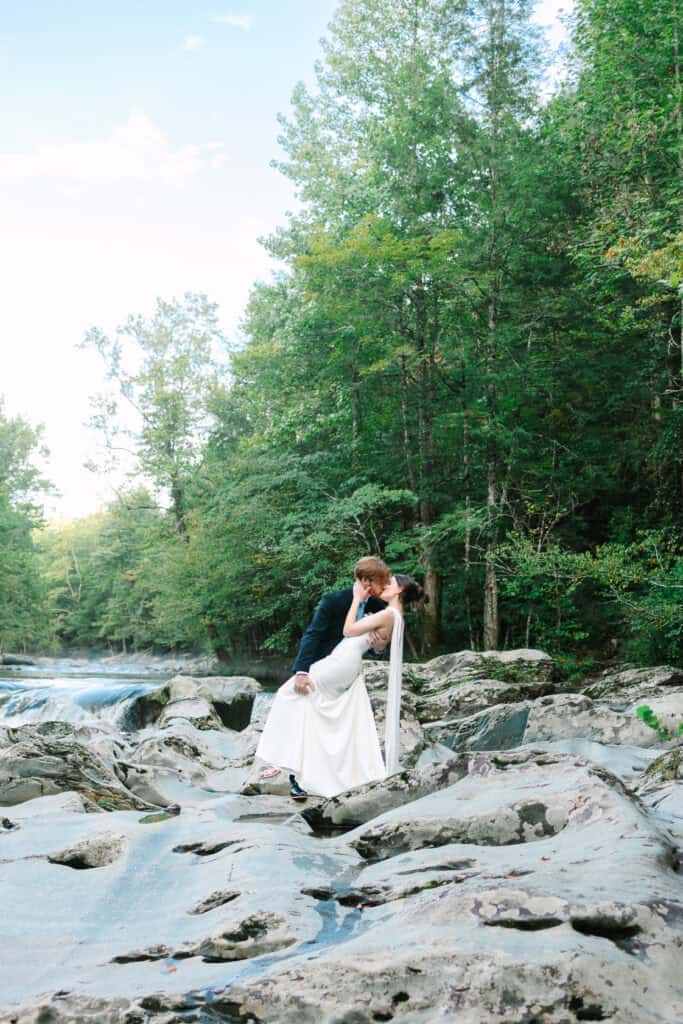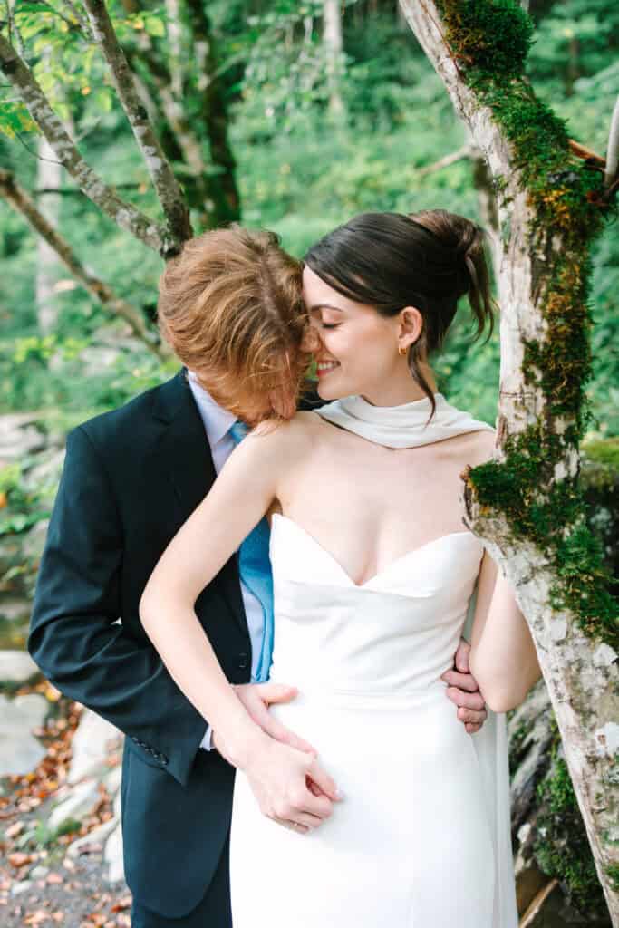 After saying “I do,” the couple ventured deeper into Great Smoky Mountains National Park for their newlywed photos. Greenbrier, a less crowded area of the park, provided a lush, natural setting for their wedding portraits.
