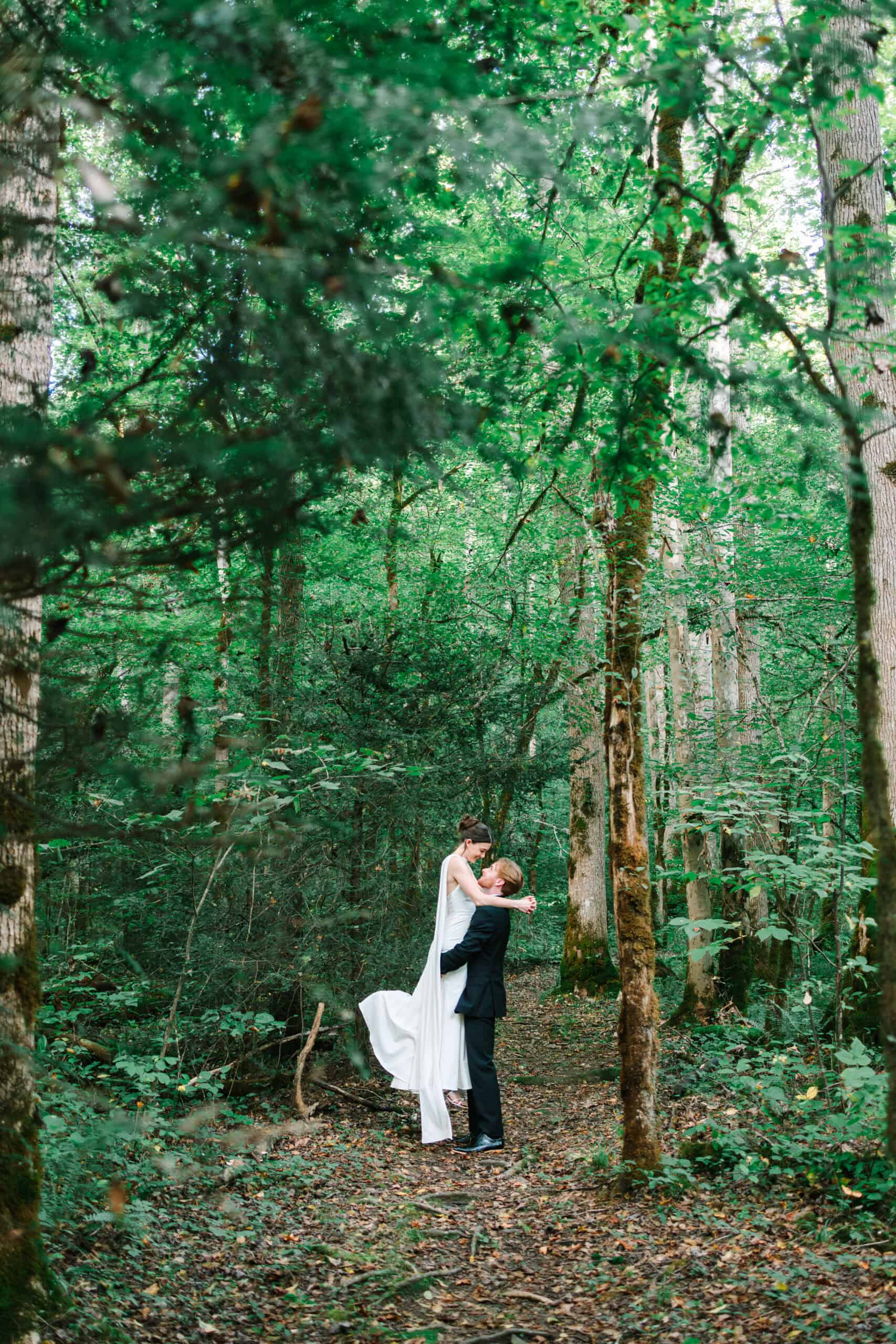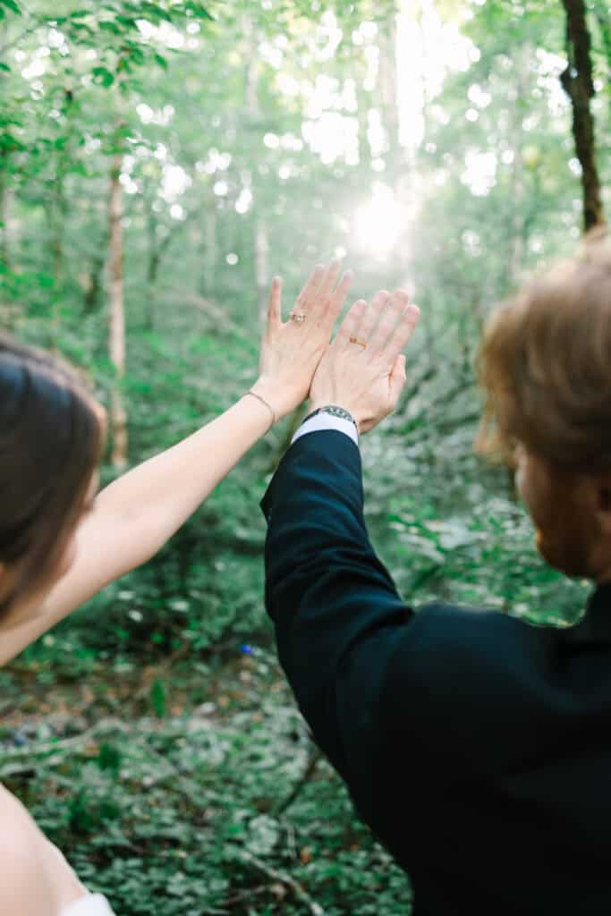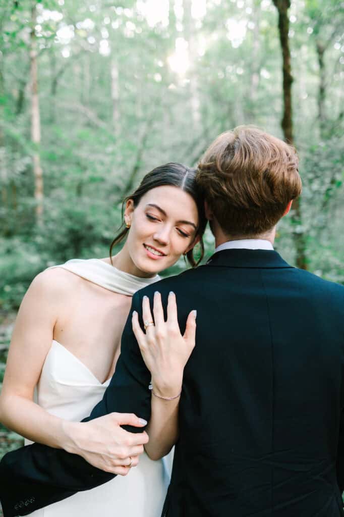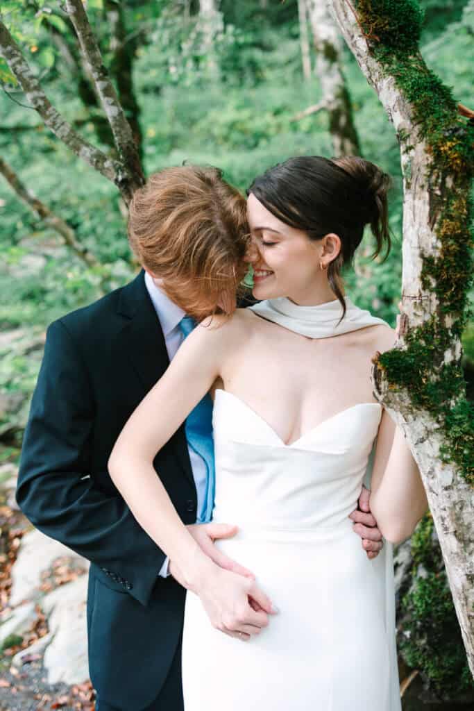 After saying “I do,” the couple ventured deeper into Great Smoky Mountains National Park for their newlywed photos. Greenbrier, a less crowded area of the park, provided a lush, natural setting for their wedding portraits.