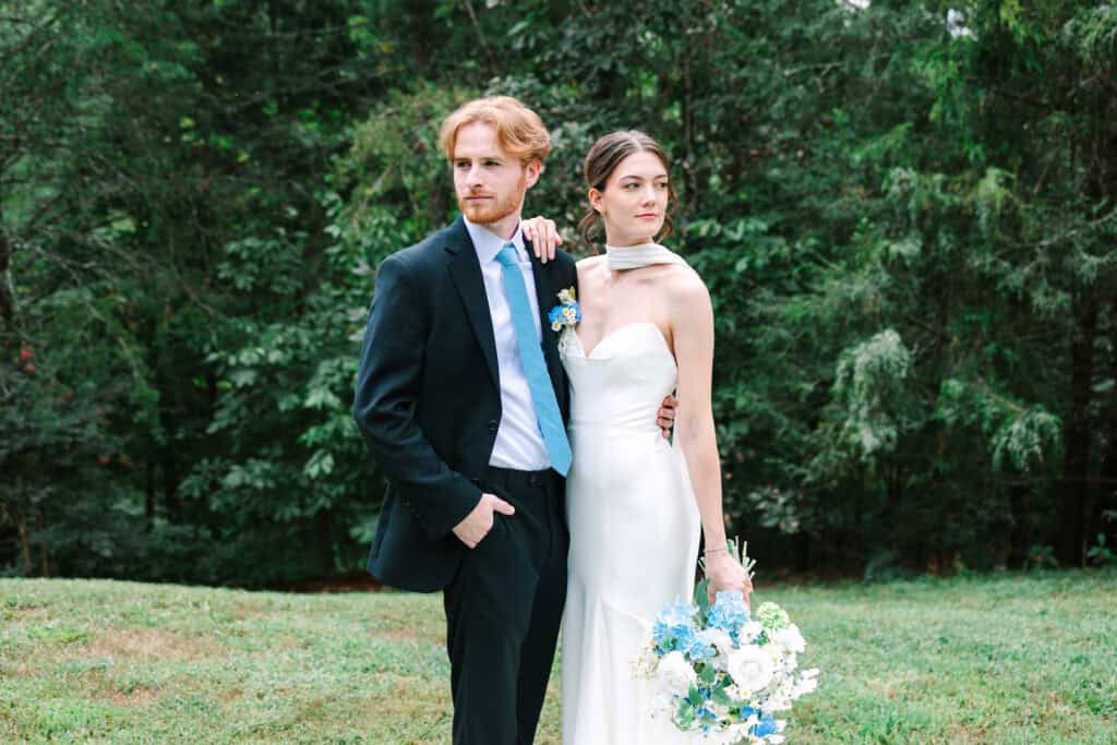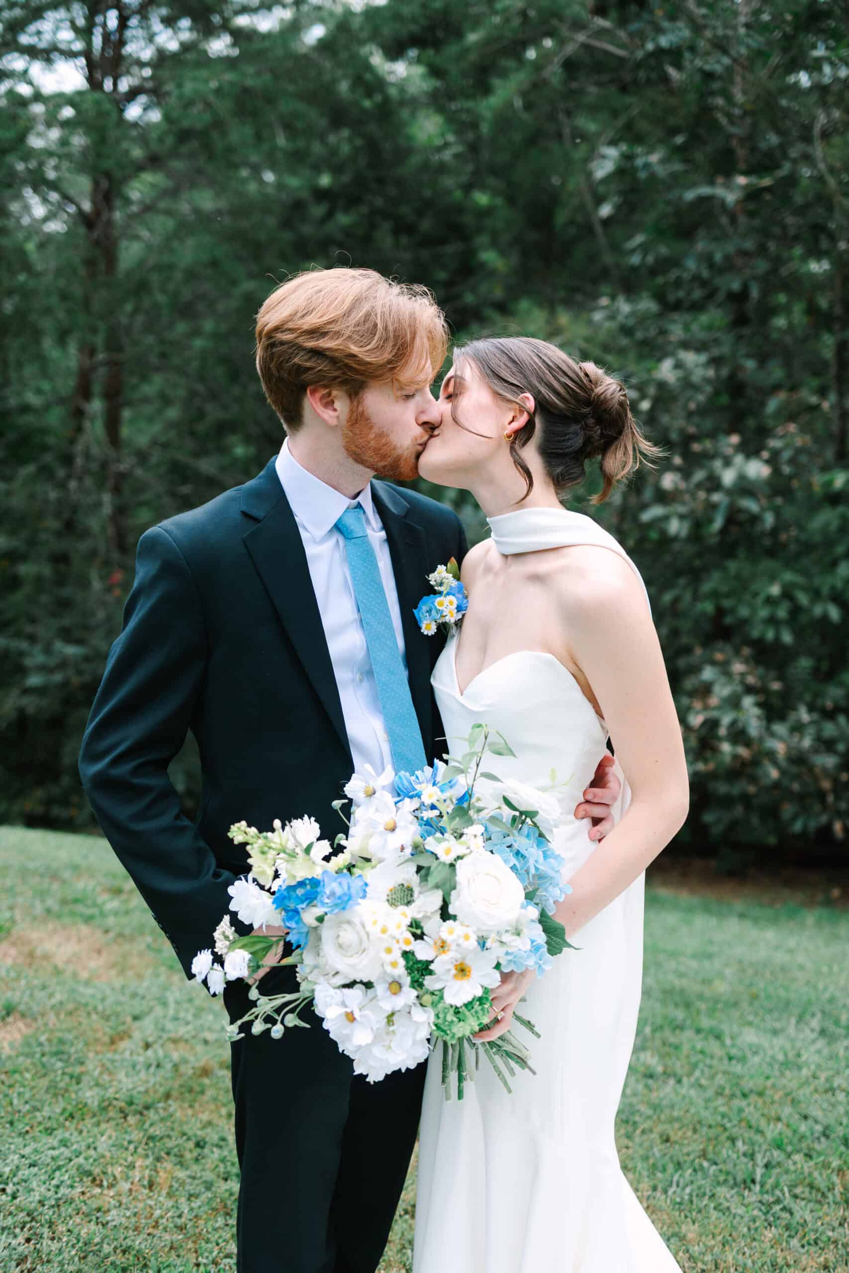 From the start, Allie and Avery wanted their wedding to feel like a small family gathering – casual yet meaningful. They chose a light, summery color palette of blue, greenery, and white to create a whimsical, laid-back atmosphere.