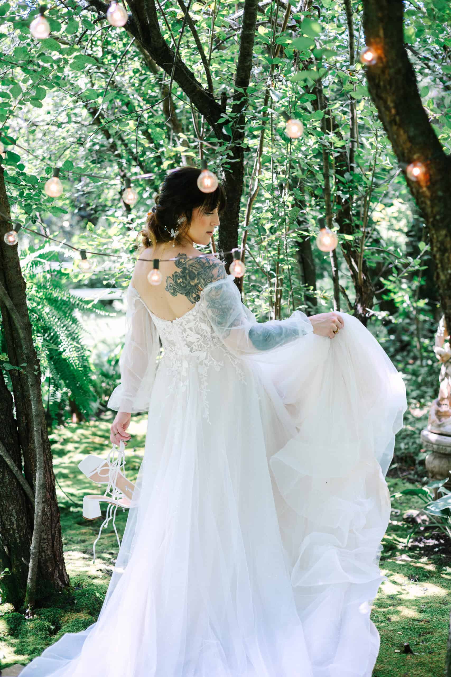 This styled shoot at Trellis Outdoor Wedding Ceremonies was inspired by the feeling of stepping into a hidden garden. Quiet. Romantic. A little wild in the best way. Everything about the space invited softness and movement, so the goal was to let the setting lead and build the design around it.